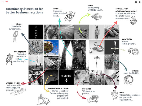 Unique home page grid, content via AJAX, search engine optimized. Bi-lingual (English/Dutch).